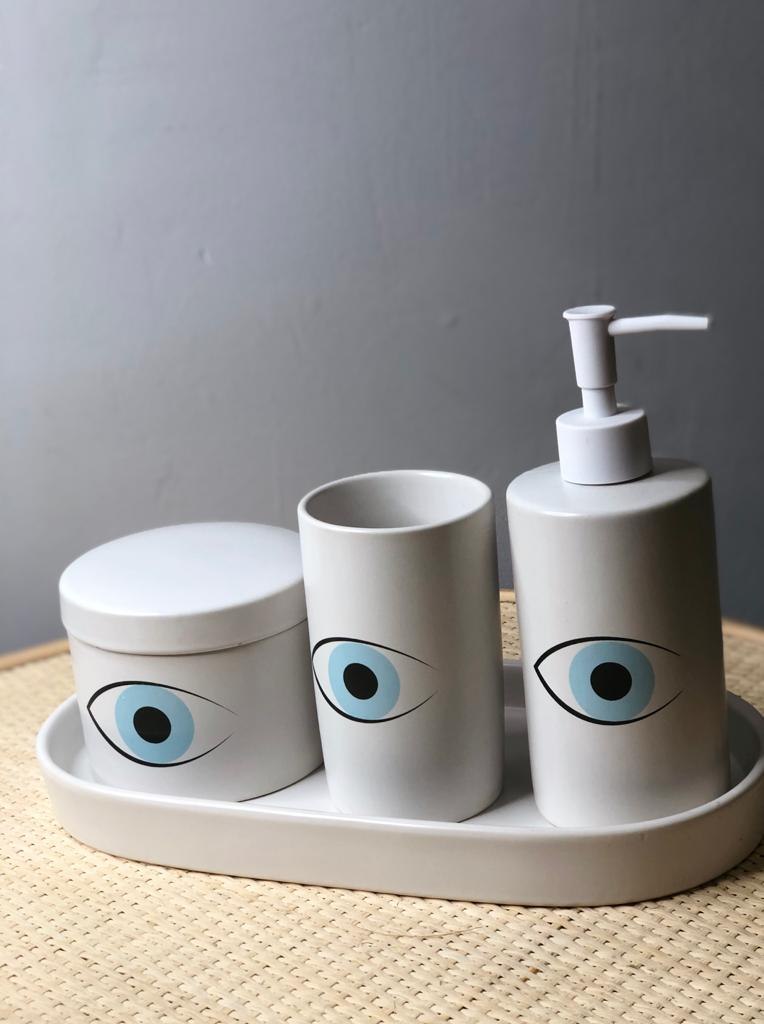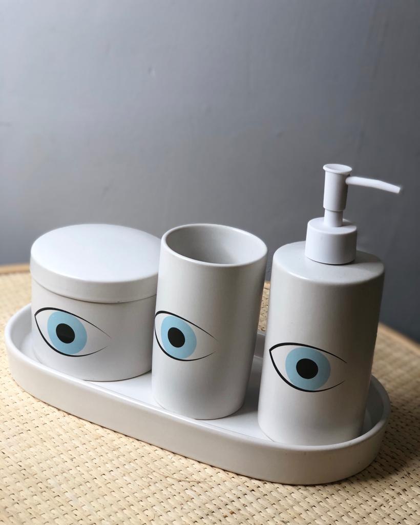 סט לאמבטיה בצבע לבן עם עיטור עין
